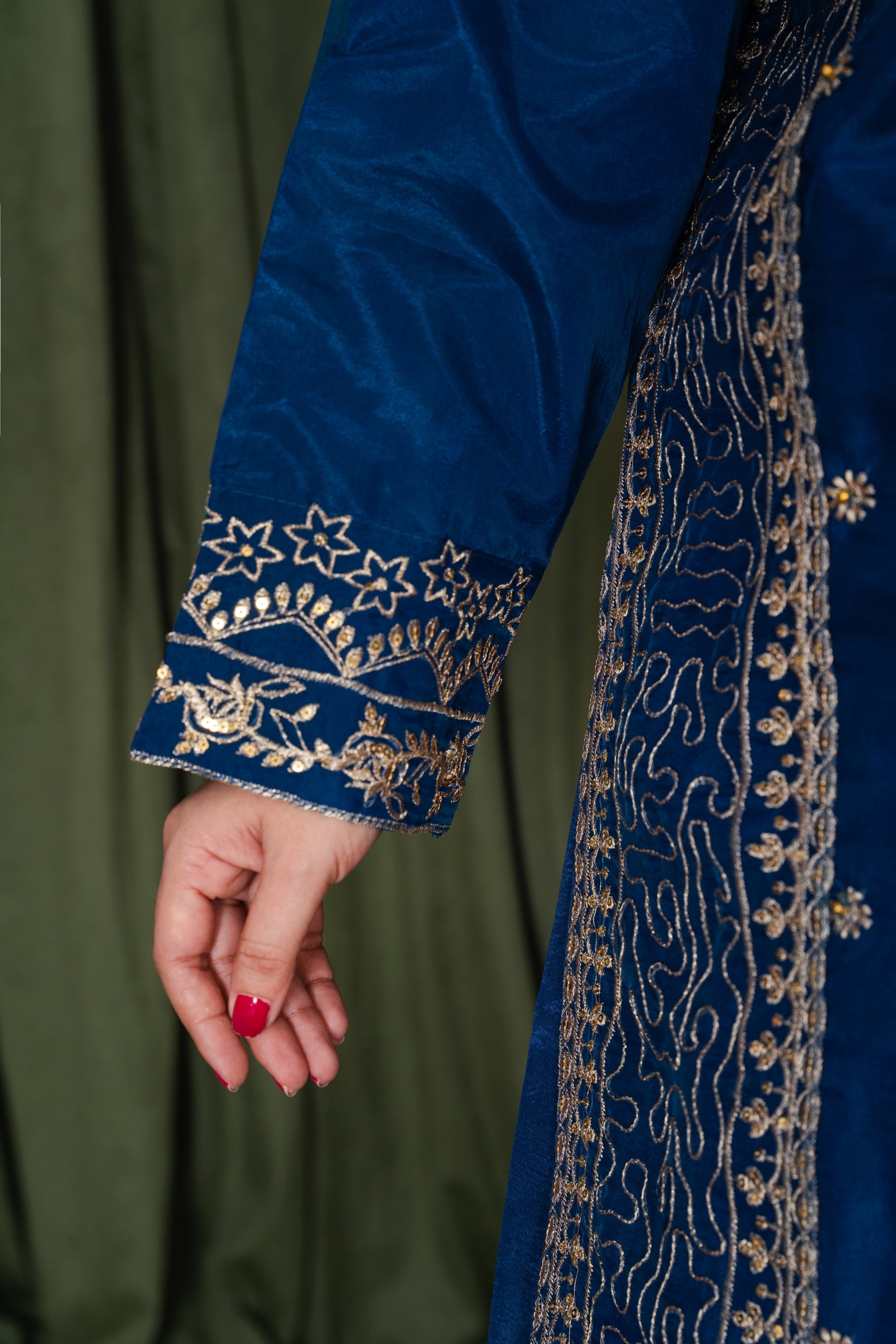 Radiate timeless charm in Gulnar — a 3-piece embroidered ensemble featuring a hand-embellished organza shirt with stitched katan silk lining, paired with an intricately detailed flaired katan silk trouser and an ethereal embroidered organza dupatta. Perfect for festive elegance and graceful allure.
